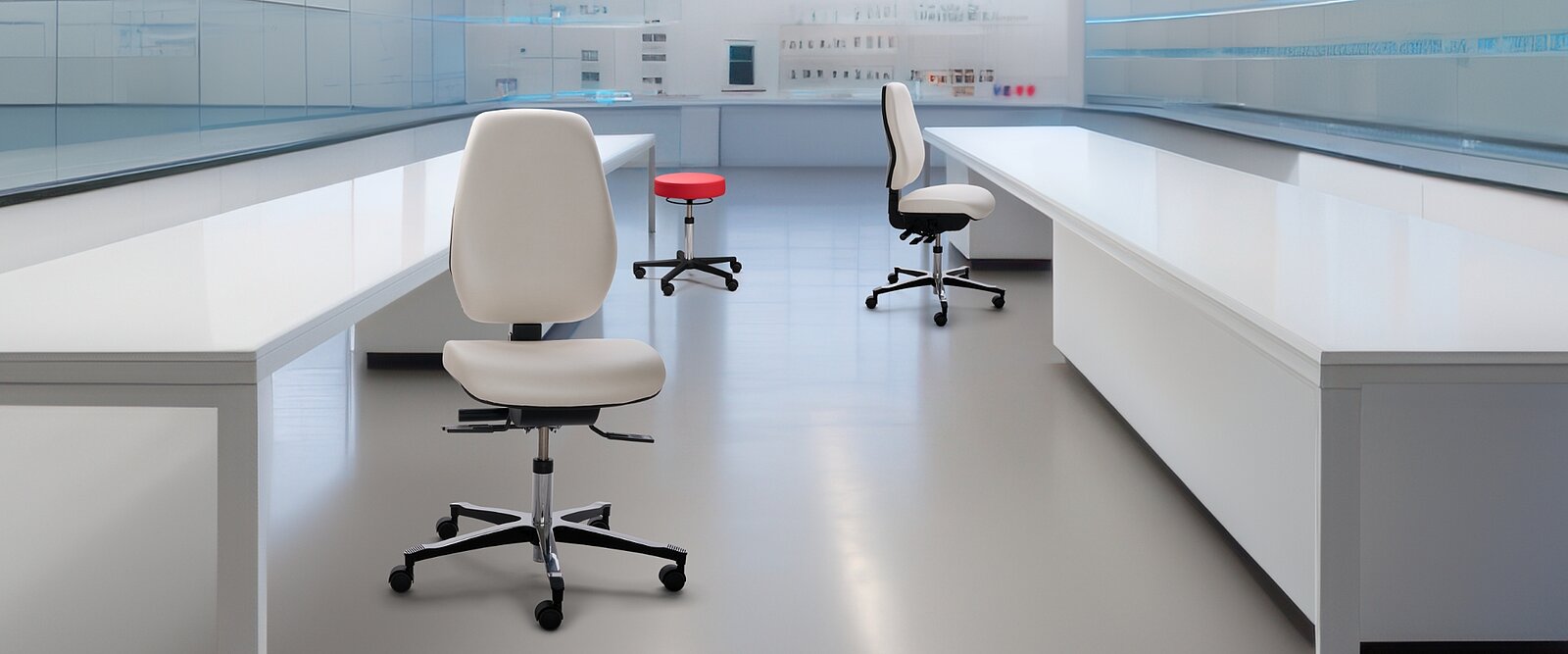 Perfectie tot in details. Wie nauwkeurig en geconcentreerd in een laboratorium moet werken, moet ontspannen zitten. Als iemand in een microscoop kijkt om bijvoorbeeld onderzoeksresultaten vast te leggen, moet de laboratoriumstoel een juiste ergonomische houding mogelijk maken en zich met intelligente technologie aan de desbetreffende zithouding aanpassen.
