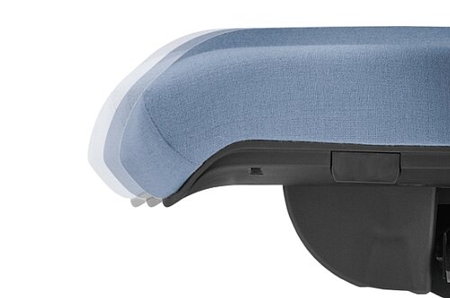 Volgt uw dynamiek: u kunt de tegendruk van de rugleuning met behulp van een handwiel snel en eenvoudig het best zo instellen dat uw bovenlichaam bij het oprichten zacht ondersteund, maar niet naar voren gedrukt wordt.