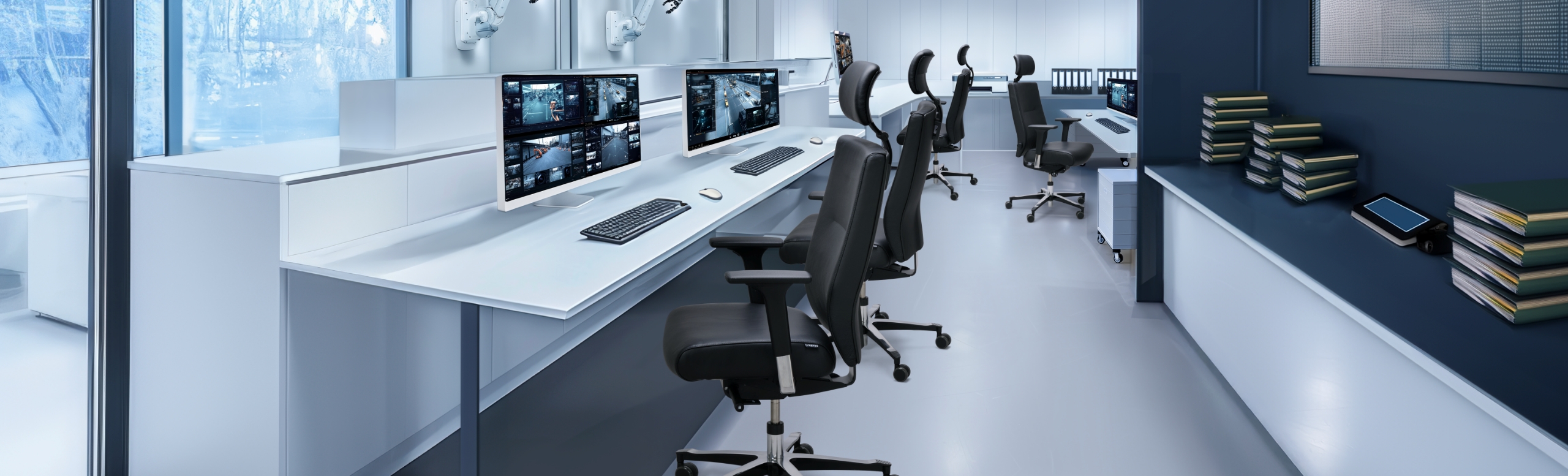 Extreme eisen. Waar 24 uur per dag zeer geconcentreerd wordt gewerkt, moet de werkstoel perfect zijn. Want in controleruimtes of bewakingsruimtes zijn vermoeidheidsverschijnselen door lang zitten taboe. Alleen wie lichamelijk en geestelijk volledig inzetbaar is, kan de veiligheid van anderen garanderen. Dynamisch zitten in de meest uiteenlopende zitposities draagt bij aan het prestatievermogen. Zelfs wanneer een dienst de hele nacht duurt.